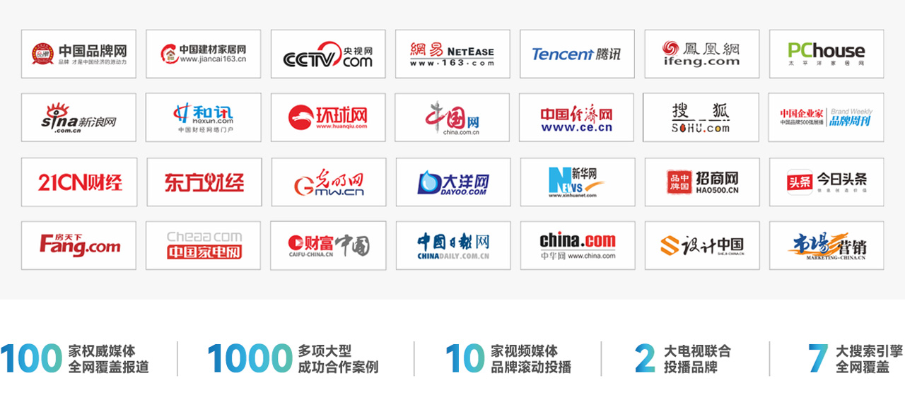2兩大電視頻道投播 · 7大搜索引擎全面覆蓋 · 10多家視頻媒體展播 · 百家權(quán)威媒體全年報道